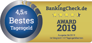 1. Platz – „Bestes Tagesgeld 2019“ (4,5 von 5 möglichen Punkten)