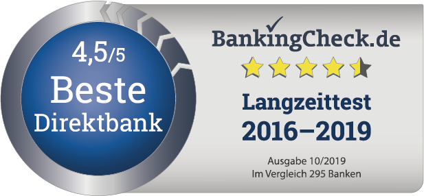 „Beste Direktbank“ (1. Platz) mit 4,5 von 5,0 Punkten