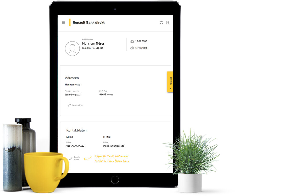 Sie möchten mehr Informationen und Tipps rund um die Renault Bank direkt? - Et voilà: Heute zeigen wir Ihnen wie Sie Ihre persönlichen Daten ganz einfach - mit nur wenigen Klicks - ändern können.