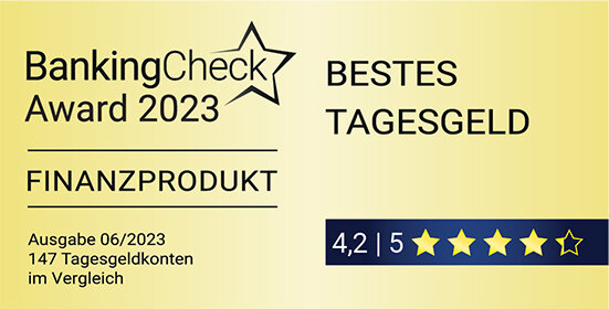 1. Platz – „Bestes Tagesgeld 2023“ (4,2 von 5 möglichen Punkten)
